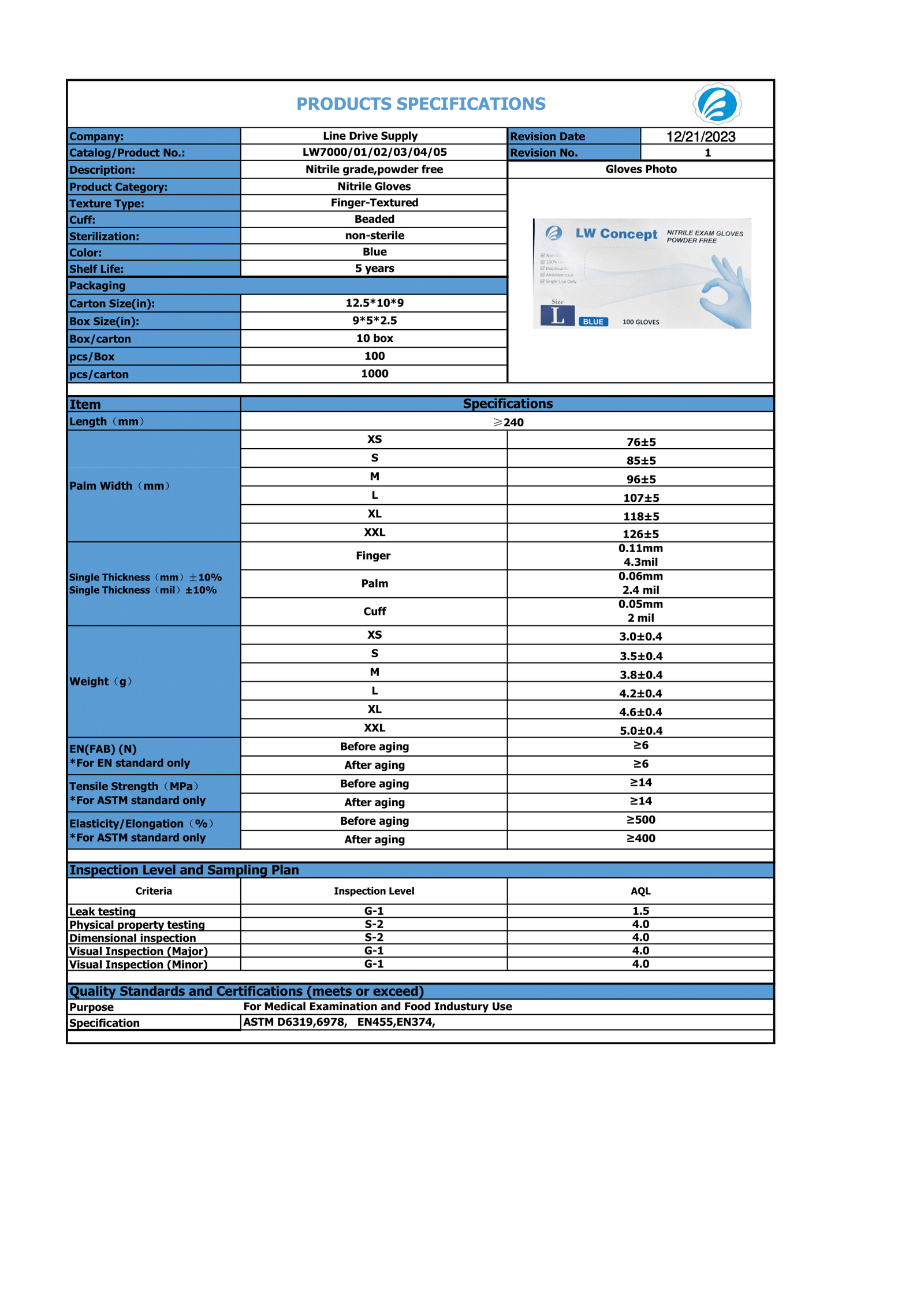 - 100 gloves per box, 10 boxes per case, 120 cases per pallet