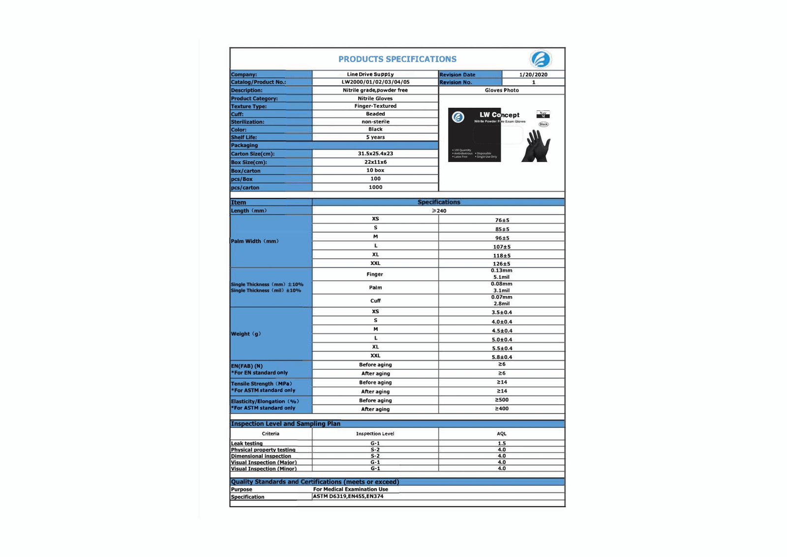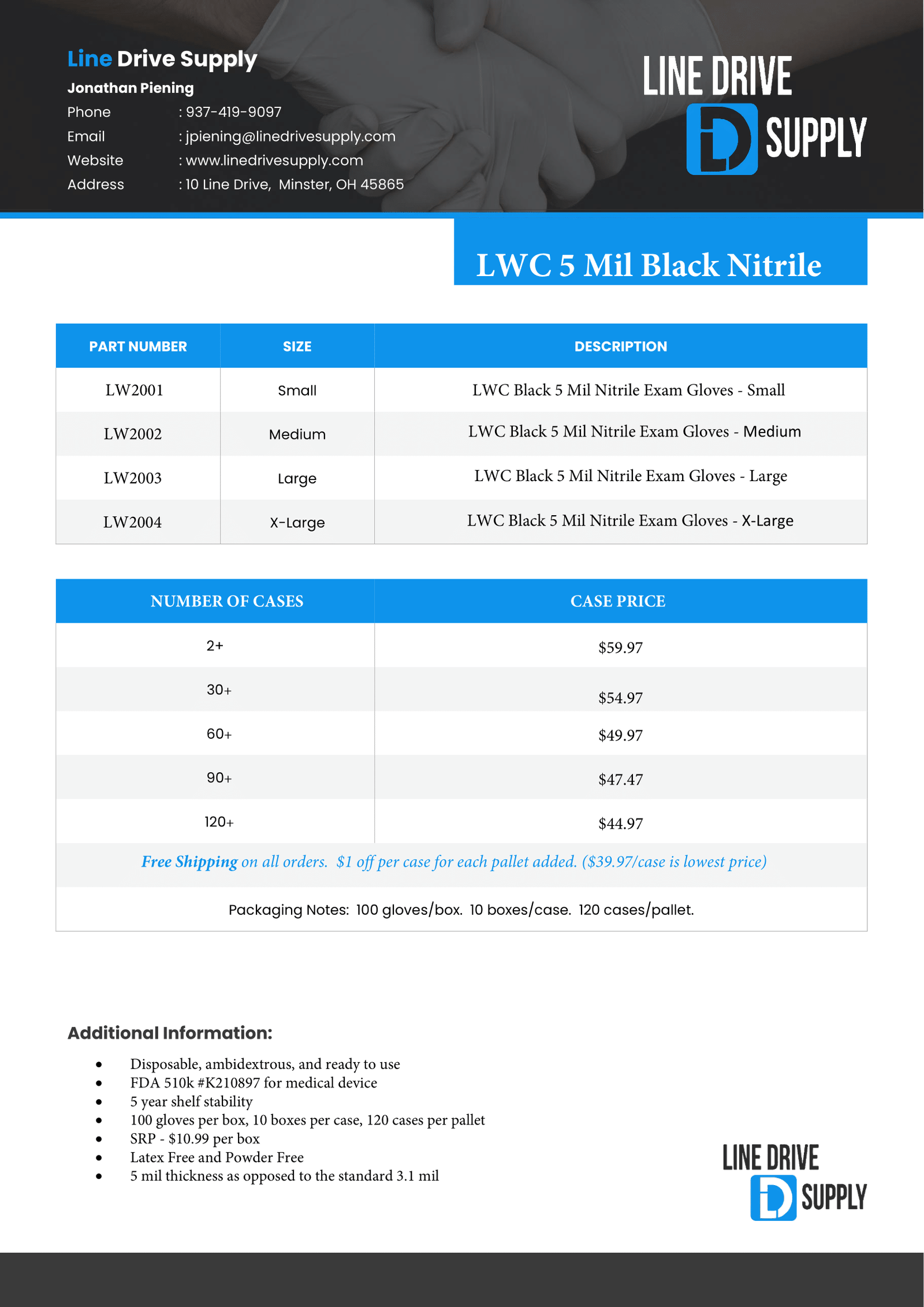 - 100 gloves per box, 10 boxes per case, 120 cases per pallet